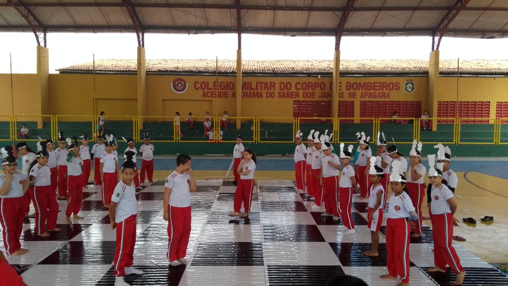 destacar o jogo de xadrez humano, natação, jogo de futebol de salão, pintura,